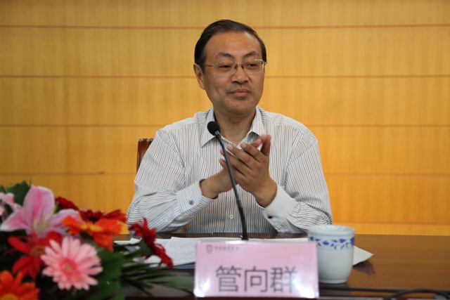 管向群代表院党委和行政向本次"国培计划"研修项目的顺利开班表示祝贺,向学员们表示欢迎。他向大家介绍了江苏省以及我院的概况,指出,江苏历来是鱼米之乡、富庶之地,人文荟萃、从文重教、充满活力;而我院作为"两大基地、三大中心",不仅是中小学骨干校长和骨干教师的培训基地,还是江苏省教师培训中心、行政干部培训中心与教师资格的认定中心。我院向来注重人才培养、教育培训与教学科研的同时进行。他强调指出,小学语文教育非常重要,对小学语文教师的培训有着重要的现实意义,"国培计划"研修项目是教师培训的最高水平项目,因此学员应该高度重视,珍惜培训机会。他对了本次"国培计划"研修项目提出了希望,希望此项目能够成为先进理念的传播讲坛、教学经验的交流窗口、前沿问题的切磋平台、教学改革的实践载体、情感友谊的连结纽带。他表示,为此我院将不懈努力,为把国培项目做成具有权威性、示范性、高水平、有特色的项目而奋斗。