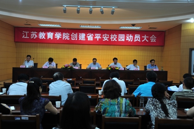 6月27日下午,我院在草场门校区教科研楼511会议室召开"创建江苏省平安校园"动员大会。院领导班子全体成员出席大会,全体中层干部参加大会。大会由党委副书记、副院长程建军主持。