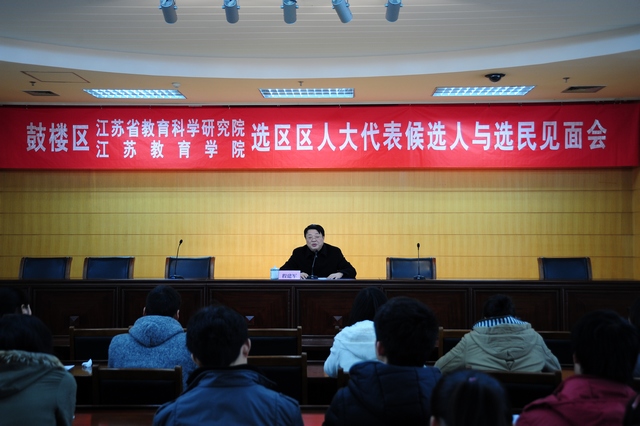 3月8日下午,鼓楼区江苏省教育科学研究院、江苏教育学院选区区人大代表候选人与选民见面会在我院511报告厅举行。院党委副书记、副院长程建军,本选区区人大代表候选人副院长王仁雷,中文系党总支书记、副主任卜玉平以及选民代表等参加了见面会。见面会由程建军主持。