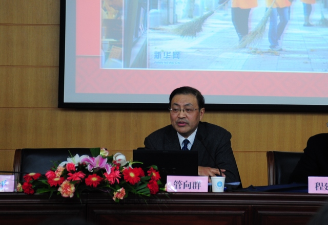 管向群全面总结了2011年全院各项工作取得的进展和成绩。他说,2011年,对于我院来说是十分重要的一年。在省委、省政府的亲切关怀下和省委教育工委、省教育厅的关心指导下,全院教职员工以党的十七大精神和科学发展观为统领,以国家和省教育中长期规划纲要为指导,以庆祝建党90周年为契机,认真贯彻落实全国、全省教育工作会议和高校党建工作会议精神,依据年初制定的党政工作要点和下半年制定的围绕一个重点(学习贯彻胡锦涛总书记七一重要讲话精神)、一个核心(解放思想、创新发展)、四项工程(内涵建设、深化改革、服务社会、党建创新)的工作部署,全面推进党的建设和教学、科研、管理、服务各项工作,教育教学质量进一步提升,教研科研水平进一步提高,干训师训工作进一步拓展,管理服务工作进一步优化,党建创新工程进一步推进,改善民生力度进一步加大,圆满完成了全年工作任务,推动我院事业在科学发展进程中取得了新的成绩。