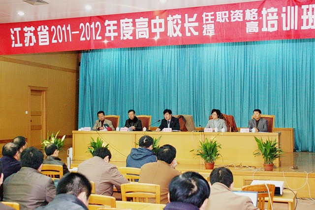 为贯彻全国、全省教育工作会议精神和《教育改革和发展规划纲要》,全面落实中共教育部党组《关于教育系统深入开展大规模培训干部工作的实施意见》和教育部《中小学校长培训规定》的有关要求,加强全省高素质、专业化、现代化校长队伍建设,促进全省普通高级(完全)中学校长科学管理学校水平的进一步提高,12月15日,由江苏教育行政干部培训中心举办的江苏省第24期高中校长任职资格培训班、2011-2012年度高中校长提高培训班在南京同时开班。