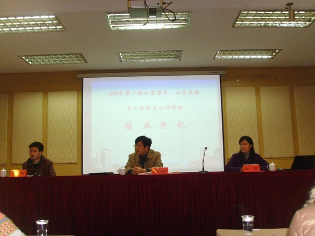 12月2日至7日,江苏省教师培训中心与我院外语系联合举办了中、小学英语骨干教师高级研修班。常务副院长周成平出席开学典礼并对研修活动作指导。副院长王仁雷出席结业典礼并为学员颁发结业证书。
