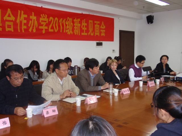 11月7日上午,我院在教科研楼503室召开中澳合作办学2011级新生见面会。副院长王仁雷,南十字星大学国际部主任MS ULRIKE BAKER女士 、中国地区代表陈亮先生一行,院办副主任陆怡,人文学院院长梁励、中澳班班主任和辅导员,教务处处长蔡飞、副处长徐群等相关人员,以及中澳合作办学2011级全体新生参加会议。会议由徐群主持。