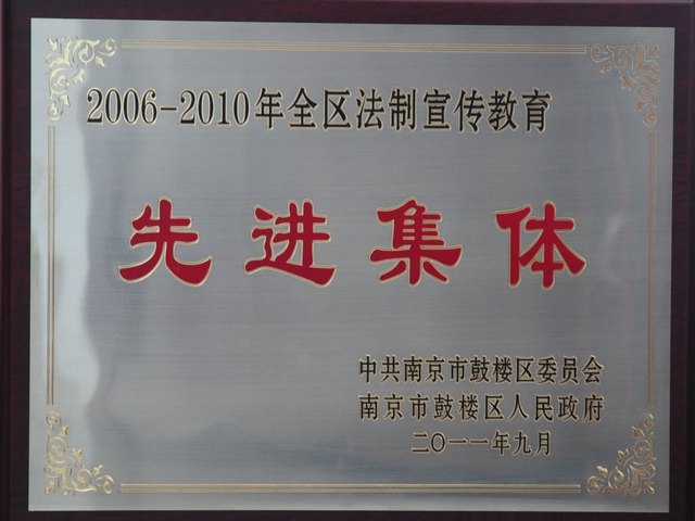 喜讯:在2006-2010年鼓楼区法制宣传教育评选中,我院获得先进集体称号。