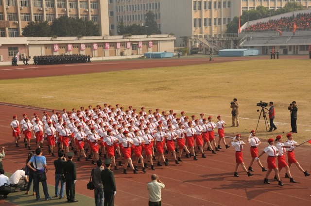 针对本次汇报大会,我院各级领导高度重视,军训办做了精心的准备,从1600余名2011级普高新生中精心选拔出104名女生,组成徒手方队。在训练过程中,她们继承发扬了"流血流汗不流泪,掉皮掉肉不掉队"的革命精神,刻苦训练,展现出了新时代我院学子的优良风貌。