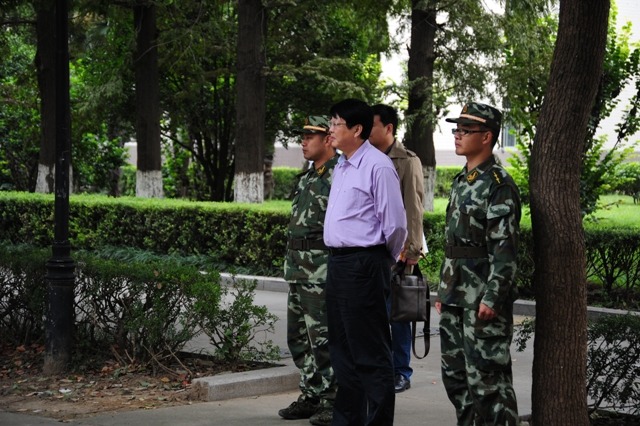 9月19日上午,院党委副书记、副院长程建军来到草场门校区训练场亲切慰问全体施训教官和参训学生。武警江苏总队二支队一大队副大队长王岭峰等陪同慰问。