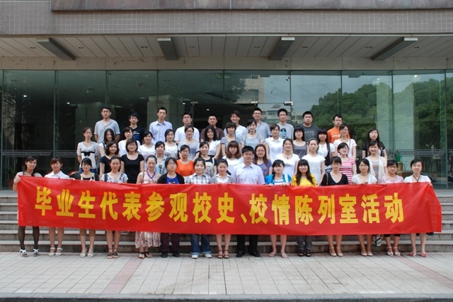 6月9日,学工处组织2011届毕业生代表参观校史、校情陈列室,学工处处长刘贵友参加活动。