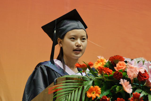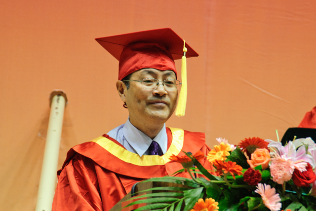 美术系主任张广才教授、外语系毕业生梅芸同学作为教师代表和毕业生代表先后发言。张广才为毕业生们上了“最后一课”,他希望广大毕业生坚守梦想,拒绝平庸;坚持学习,善于学习;摆正位置,学会做人,把握住人生的航向,拥有充实而幸福的人生。梅芸代表毕业生感谢母校的辛勤培育和老师们的关怀指导,并请母校和老师们放心,他们将在母校的祝福下,牢记“崇德敬业、求真创新”的校训,做拥有智慧并富有激情的教院人,做胸怀大志并脚踏实地的教院人,做德才兼备并勇于创新的教院人,做富有责任并敢挑重担的教院人。