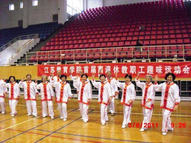 原教管系副主任周在人带领太极拳队上场表演了太极拳。他们在悠扬的音乐声中翩翩起舞,整套动作轻柔、舒缓,表现出太极拳宇宙精神的"生命之美"和"生态之美"。他们的表演赢得了全场热烈的掌声。