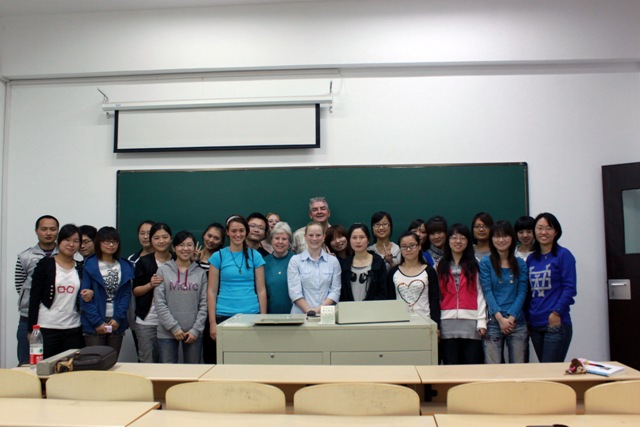 5月25日下午,美国布鲁菲尔德学院施罗耶教授在我院小行校区作了美国文化专题讲座,并参加英语社团活动,与同学们近距离交流。