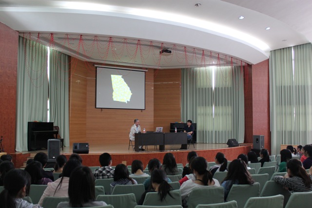 在两个多小时的时间里,施罗耶教授用幽默生动的语言深入浅出、言简意赅地向同学们介绍了美国的风土人情和历史文化。在讲解的同时,施罗耶教授还注重与台下学生之间的互动,他风趣的谈吐和渊博的学识多次博得了同学们热烈的掌声。整个讲座进行的过程中充满欢声笑语,师生交流融洽而和谐。
