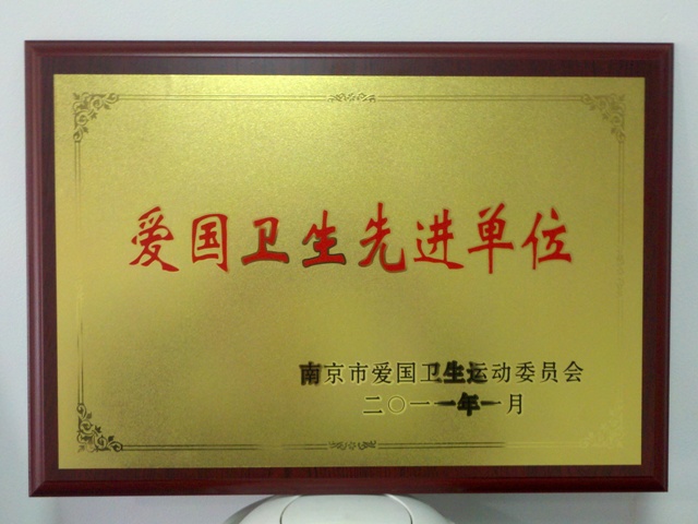 2010年是南京市接受国家卫生城市、全国文明城市复查的关键年,我院积极响应南京市政府的号召,大力开展爱国卫生运动。在院党政领导的关心指导下,在全院师生员工的大力支持与配合下,特别是在我院后勤一线员工的共同努力下,2010年我院爱国卫生工作成绩显著,荣获2010年度"南京市爱国卫生先进单位"荣誉称号。