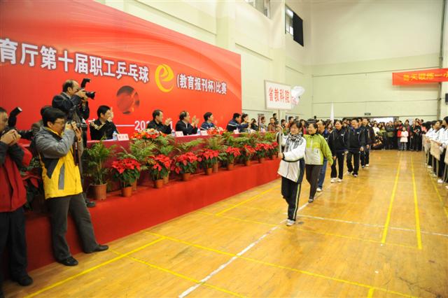 教育厅第十届“教育报刊杯”职工乒乓球比赛日前在宁海中学开赛,我院教科院代表队组成以机关一总支书记、党院办办公室副主任陆怡为领队的乒乓球队参赛。来自教育厅机关处室以及下属单位的三十余支队伍参赛。我院代表队士气高昂,在强手林立的乙组取得了不俗的战绩。通过比赛,我们锻炼了队伍,还增加了与教育厅各处室以及各兄弟单位的友谊。