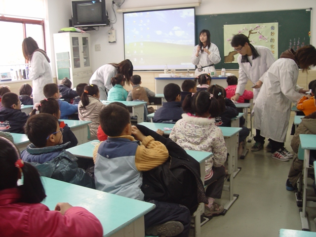 自3月17日开始,我院08化学教育专业朱其政、潘璐、吴星星、吴杨、丁晓雯、李慧6名同学查询相关资料,精心设计课堂,并在我院邓海威老师、我校教务处副处长耿珺教授指导下完成课堂内容的设计与试讲。通过半个月的充分准备,4月2日下午,6名同学走进琅琊路小学,顺利地进行了课堂内容的教学。课堂上气氛活跃,通过趣味实验演示、知识普及、学生观察与发现、学生动手实验等四个部分,激发学生学习科学的动机,提升学生的科学素质。