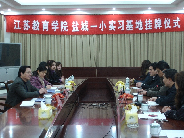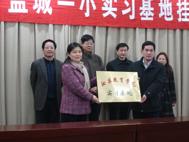 3月22日,在教务处李新宇调研员带领下,中文系党总支书记卜玉平和团总支书记刘姝赴盐城市第一小学举行了实习实践基地挂牌仪式。盐城市教育局督导童骋,盐城一小校长张斌,副校长仓定志出席挂牌仪式,副校长雷燕主持挂牌仪式。
