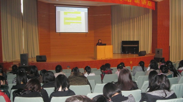 徐蕴阐述了四六级和口语证的重要性,分析了四六级考试的题型、难易程度及解题技巧,并给同学提出了复习和应考的宝贵的意见,让在场的同学们获益匪浅。