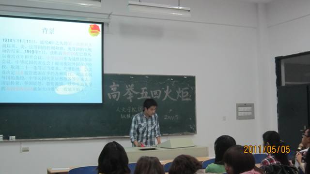 为响应校团委号召,纪念"五四运动"92周年,激励广大团员青年继承和发扬"五四运动"的光荣传统,增强建设和谐社会的历史责任感和使命感,近日,人文学院举办了"高举五四火炬,争当发展先锋"主题系列活动。