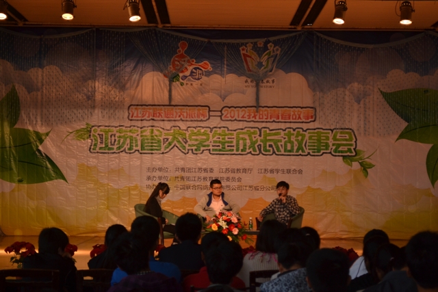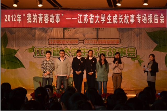 10月31日下午,由团省委、省学联主办,五所高校承办的“我的青春故事”江苏省百场大学生成长故事会江苏教育学院专场在我院浦口校区礼堂隆重举行。来自我院的尹青伟,南京艺术学院的李乾玉,江苏城市职业学院的程问问,南京旅游职业学院的王晶晶、王圣楠,南京铁道职业技术学院的朱稚彬六位学生典型人物在现场与我院浦口校区近千名2012级新生分享了他们的青春故事。