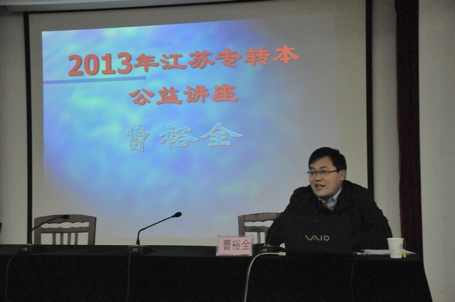 为了更好地做好我院专转本学生升学工作,应广大师生要求,3月13日下午,学工处大学生就业指导中心在现代教育技术楼二楼报告厅举办了一场主题为“2013年江苏专转本考试”的公益讲座。讲座由省青干院的曹裕全老师主讲。