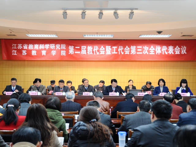 3月20日下午,江苏省教育科学研究院、江苏教育学院第二届教代会暨工代会第三次全体代表会议在草场门校区教科研楼511报告厅召开,院党委书记管向群,党委副书记、副院长、院工会主席程建军,常务副院长周成平,副院长王仁雷、张勤,纪委书记刘青平,副院长刘继红出席会议,全体教代会暨工代会代表、特邀代表、列席代表参加会议。会议由程建军主持。