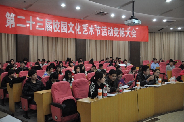 为促进我院第二十三届校园文化艺术节活动的深入开展,充分挖掘各院系团总支、团支部、各级学生组织的潜力,4月9日晚,团委在草场门校区报告厅举行了院第二十三届校园文化艺术节活动竞标大会。