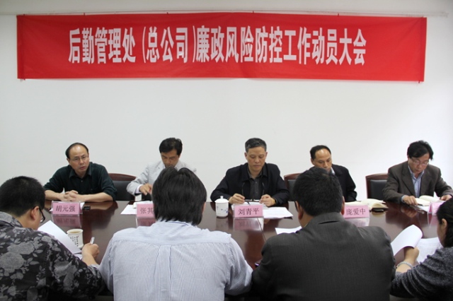 5月8日下午,后勤管理处、后勤服务总公司召开廉政风险防控工作动员大会,后勤管理处(总公司)各部门负责人和重点岗位人员近30人参加会议。会议由后勤管理处处长胡元强主持。院纪委书记刘青平到会并作重要讲话。