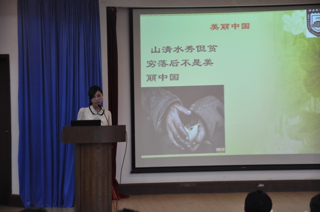 全国大学生“自强之星”提名奖获得者侯云,青马工程培训班学员代表顾梦苏、杨书闻,学生社团代表、纵横时政社社员朱宇婷,学生干部代表、校学生会主席于施洋分别围绕“梦想的力量——我的中国梦”这一主题,从不同角度发表演讲。演讲题目分别是《一个人的梦想和许多人的梦想》、《关于当代青年梦想问题的调查报告》、《青山傍绿水,美丽中国梦》及《常怀梦想,坚持实践》。党委宣传部部长王宵前、思想政治理论课教研中心副主任张琴芬、党委宣传部副部长李安林、学工处处长刘贵友作为点评嘉宾先后就演讲作点评。