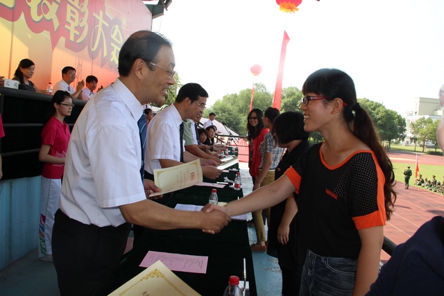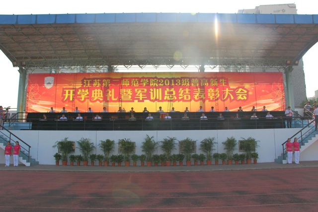 9月21日上午,阳光普照,彩旗飘扬。我院2013级普高新生开学典礼暨军训总结表彰大会在浦口校区田径场隆重举行。
