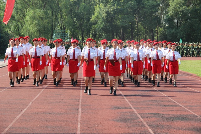 在庄严的国歌声中,大会正式开始。管向群和庄禹森检阅了新生军训团。检阅结束后,进行了分列式和军体分项表演。