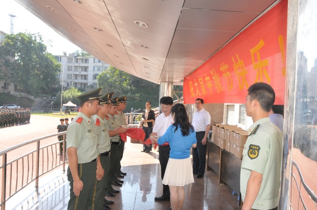 程建军代表院党委、院行政,向第一次远离父母在外地过中秋的2013级新生们致以节日的问候,向在节日中辛勤施训的武警江苏总队第二支队的教官们致以最诚挚的感谢。他希望同学们能继续发扬不怕苦,不怕累的精神,刻苦训练,力争在9月21日的开学典礼暨军训表彰大会上向全体师生展现当代90后大学生的风采,向全体师生交上一份满意的答卷。