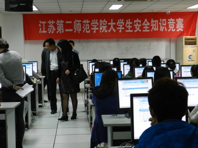 根据江苏省教育厅办公室《关于开展江苏省第二届大学生安全知识竞赛的通知》精神,10月20至23日,我院在三校区分批进行大学生安全知识竞赛选拔赛,2013级新生在三个校区分别进行网上机考。在保卫处、学工处、教务处、团委等部门负责人的陪同下,副院长刘继红对竞赛的组织和机考工作进行了巡视。