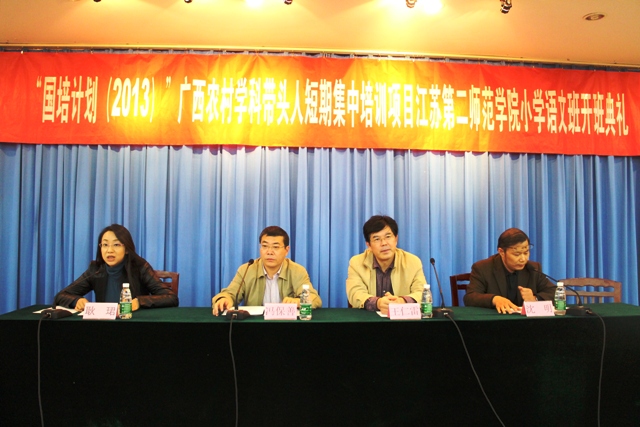 10月31日上午,我院在草场门校区现代教育技术楼二楼报告厅隆重举行“国培计划(2013)”——广西农村学科带头人短期集中培训项目小学语文班的开班典礼。副院长王仁雷,文学院副院长冯保善、继续教育办公室副主任耿珺出席,文学院党总支副书记沈明主持开班典礼。