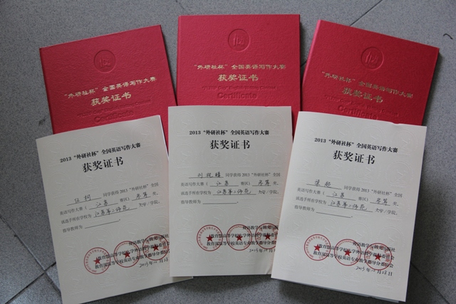 2013“外研社杯”全国英语写作大赛已落下帷幕,我院梁超、任柯、刘祝睛喜获江苏赛区三等奖。