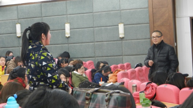 王老师以“未来社会急需怎样的一名教师?我们面对新的教育情境挑战需要什么?”为切入点与同学们分享了许多一线老师的心声,进入二十一世纪的今天,我们周围的条件与环境、生存的方式与需求、责任与价值观等都发生了明显的变化,而作为教师将用怎样的方式来解决来自我们现实、教育与美术教学中的困惑就成了首要任务,这也正是同学们未来走上讲台会面临的很实际的问题。同学们都听得很认真,认识到了一些以前从未注意的问题。在讲座中,王老师与同学们互动,气氛很活跃,两个多小时的精彩讲座令同学们受益匪浅。