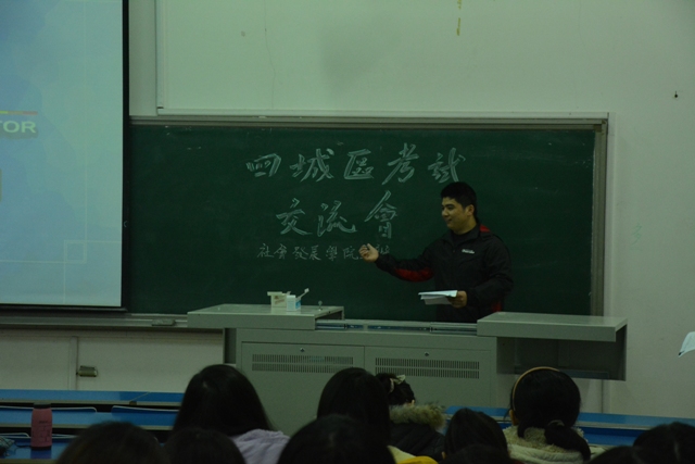 3月12号下午,社会发展学院学生会举办主题为“四城区教师编制考试&教师基本功大赛”的交流会,徐凤丹、邓玮光、张俊飞等老师应邀出席。