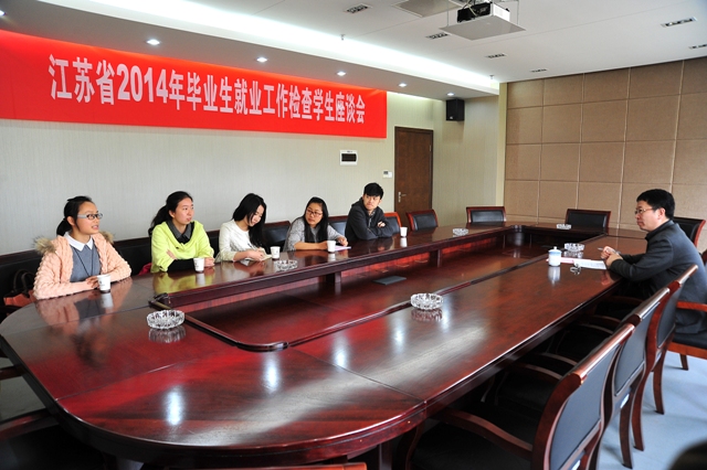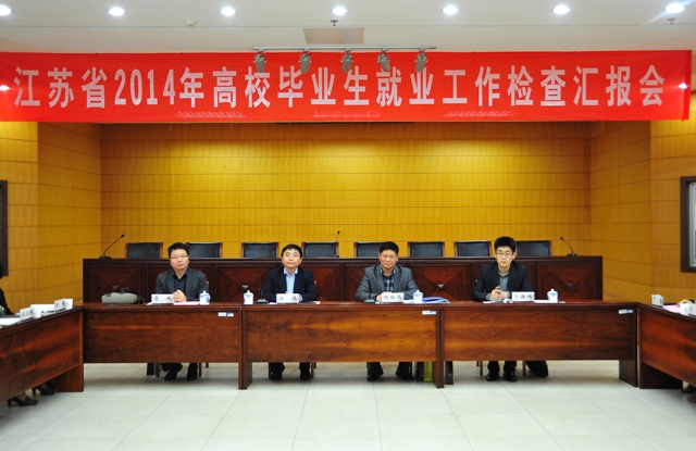 4月28日下午,由苏州大学党委副书记、副校长江涌,扬州大学学生处副处长杨桂元、南通航运职业技术学院就业处处长李斌以及苏州大学学生处卜谦祥等同志组成的江苏省2014年毕业生就业工作检查组来我院检查工作。汇报会在草场门校区教科研楼511会议室召开,院党委书记管向群,党委副书记、副院长程建军,副院长周成平、王仁雷、张勤,纪委书记刘青平,副院长刘继红出席会议,各职能部门负责人、二级学院党政负责人、2014届毕业生代表参加会议。汇报会由副院长王仁雷主持。