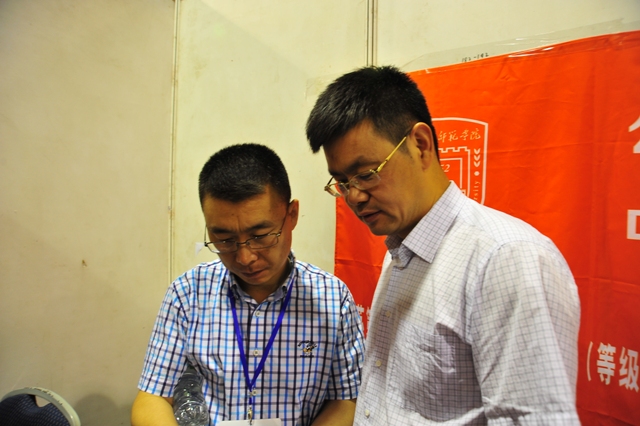6月25日,招就处处长刘贵友(右)向江苏省高校招生就业指导服务中心主任鲁学军