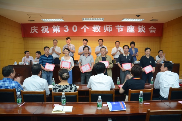 党委副书记、副院长程建军宣读从事教育工作满三十年人员名单、2013年江苏省教学成果奖(二等奖)通知和2014年江苏省优秀教育工作者表彰决定。院领导为丁伟红等十八位从事教育工作满三十年的同志颁发荣誉证书。汪霖、徐新萍、高荣国和陈华四位老师分别代表从事教育工作满三十年、省教学成果奖获得者、新晋升职称教师和新入职教师发言。