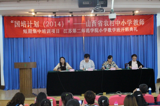 10月 10日上午,我院在草场门校区现代教育技术楼二楼报告厅举行“国培计划(2014)”——山西省农村中小学教师短期集中培训项目 江苏第二师范学院小学数学班开班典礼,副院长王仁雷、数学与信息技术学院院长徐新萍、继续教育办公室副主任耿珺出席典礼,典礼由数学与信息技术学院党总支副书记凌晓牧主持。