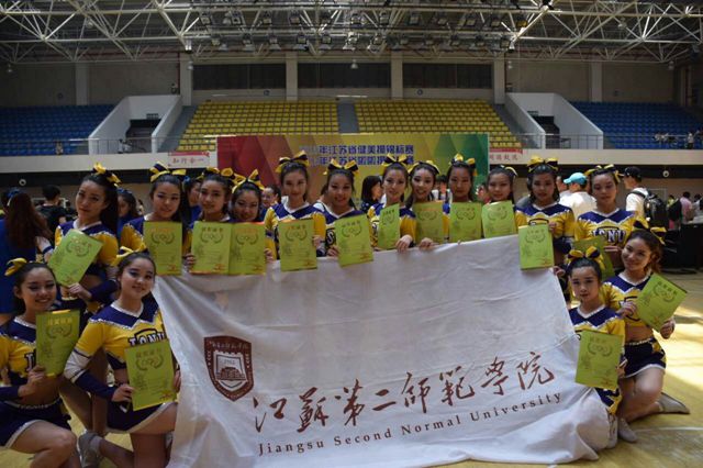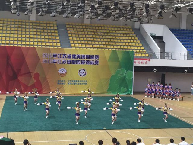 22日-24日,2015年江苏省啦啦操锦标赛在南京举行,为期三天的比赛吸引了来自省内各地的800余名运动员和教练员参加。我院代表队在赛场上克服苦难,团结协作,最终获得“大学组舞蹈啦啦操花球(二级)自选动作”第一名的好成绩。