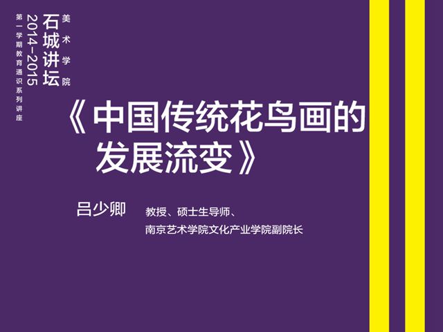 6月3日下午,美术学院举行2014-2015学年第二学期“石城讲坛”教育通识系列课程第二场讲座。南京艺术学院文化产业学院副院长、硕士生导师吕少卿教授应邀作了“中国传统花鸟画的发展流变”主题讲座。