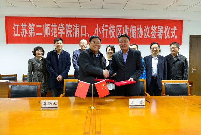 李洪天和王东代表双方签署了我校浦口、小行校区土地收储协议。