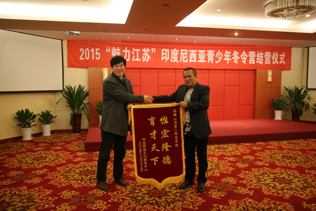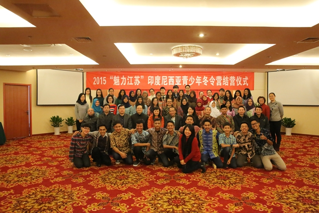 12月25日上午,2015“魅力江苏”印度尼西亚青少年冬令营在我校举行结营仪式。院长王仁雷、副院长刘继红、印度尼西亚教育部官员阿贝先生以及我校相关部门负责人出席结营仪式,全体冬令营营员、领队、任课老师以及志愿者们参加活动。