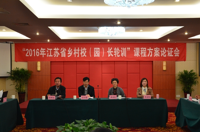 3月28日下午,2016年全省乡村校(园)长轮训课程方案专家论证会在我院举行。院长、省干训中心主任王仁雷,教育厅师资处处长崔春霞等出席论证会,江苏教育行政干部培训中心副主任刘明远主持会议。