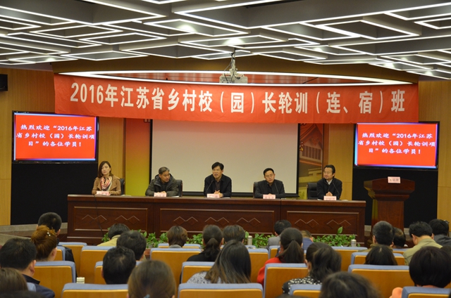 4月6日上午,2016年江苏省乡村校(园)长轮训班开班典礼在我院举行,来自宿迁、连云港两市的100名乡村初中、小学校长和50名乡村幼儿园园长共计150人将参加为期10天(分集中和跟岗两个阶段)的校(园)长轮训;江苏第二师范学院院长、江苏省教育科学研究院党委副书记、江苏教育行政干部培训中心主任王仁雷,宿迁市教育工委副书记庄永之、连云港市教育局师资处处长孙大龙等领导出席开班典礼,江苏教育行政干部培训中心副主任刘明远主持开班典礼。
