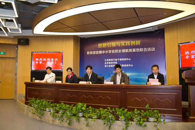 4月25日,“校长国培计划”—教育部首期中小学名校长领航班江苏基地第七次集中研修暨江苏、北京、浙江基地联合研修活动在我院举行。本次研修活动的主题是“思想引领与实践创新”。来自江苏教育行政干部培训中心、北京教育学院和浙江省教育行政干部培训中心的24位名校长和26位名校长工作室成员参加本次研修活动。
