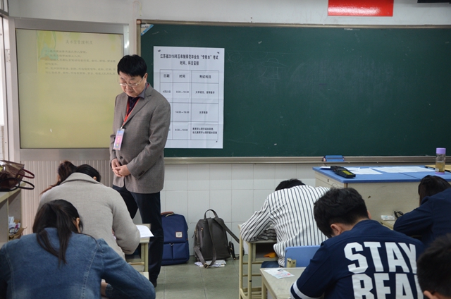 4月23日至25日,江苏省2016年五年制师范毕业生“专转本”考试在我校成功举行。考试期间,江苏省教育厅党组成员、省委教育工委副书记潘漫,师资处处长崔春霞,学生处副处长许正亚对我校考点进行了巡视。