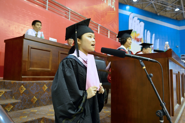 学生代表、现代传媒学院高寒回顾了在校学习生活的经历,感谢母校的辛勤培育和老师们的谆谆教诲。她表示,走出校园后,将不放弃对学习的热情,与人相处有大局、有格调、有底线,用责任心和恒心做事,把理想变为现实。