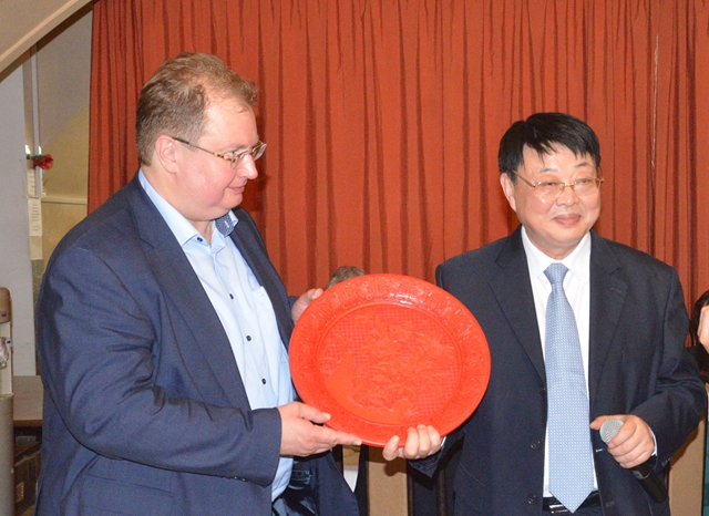 莫斯科州国立大学85周年校庆暨国际交流周活动,场面壮观,声势浩大,来自中国、德国、法国、芬兰、印度、哈萨克斯坦、斯洛文尼亚、阿塞拜疆等10多个国家的大学代表团参加了此次活动。13日,在莫斯科州国立大学为参加此次活动的世界各国大学代表团举行的欢迎仪式上,程建军代表党委书记李洪天、院长王仁雷,发表了热情洋溢、风趣幽默、富有中国气派的贺辞,并向莫斯科州国立大学赠送了贺岁礼品。