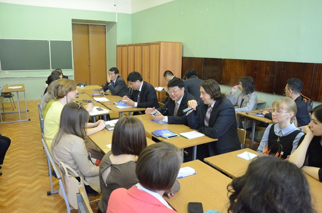 在国际交流周圆桌会议上,程建军作了主题演讲。他向该校师生详细介绍了中国的儒家文化、佛家文化和道家文化,赢得了俄方师生的高度赞誉。同时,我校代表团还与莫斯科州国立大学师生进行了广泛而深入的教育教学与文化学习的交流与互动。